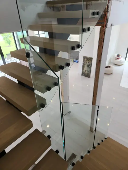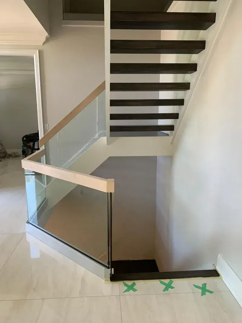 Sleek and seamless glass railings with invisible base shoe mounting.