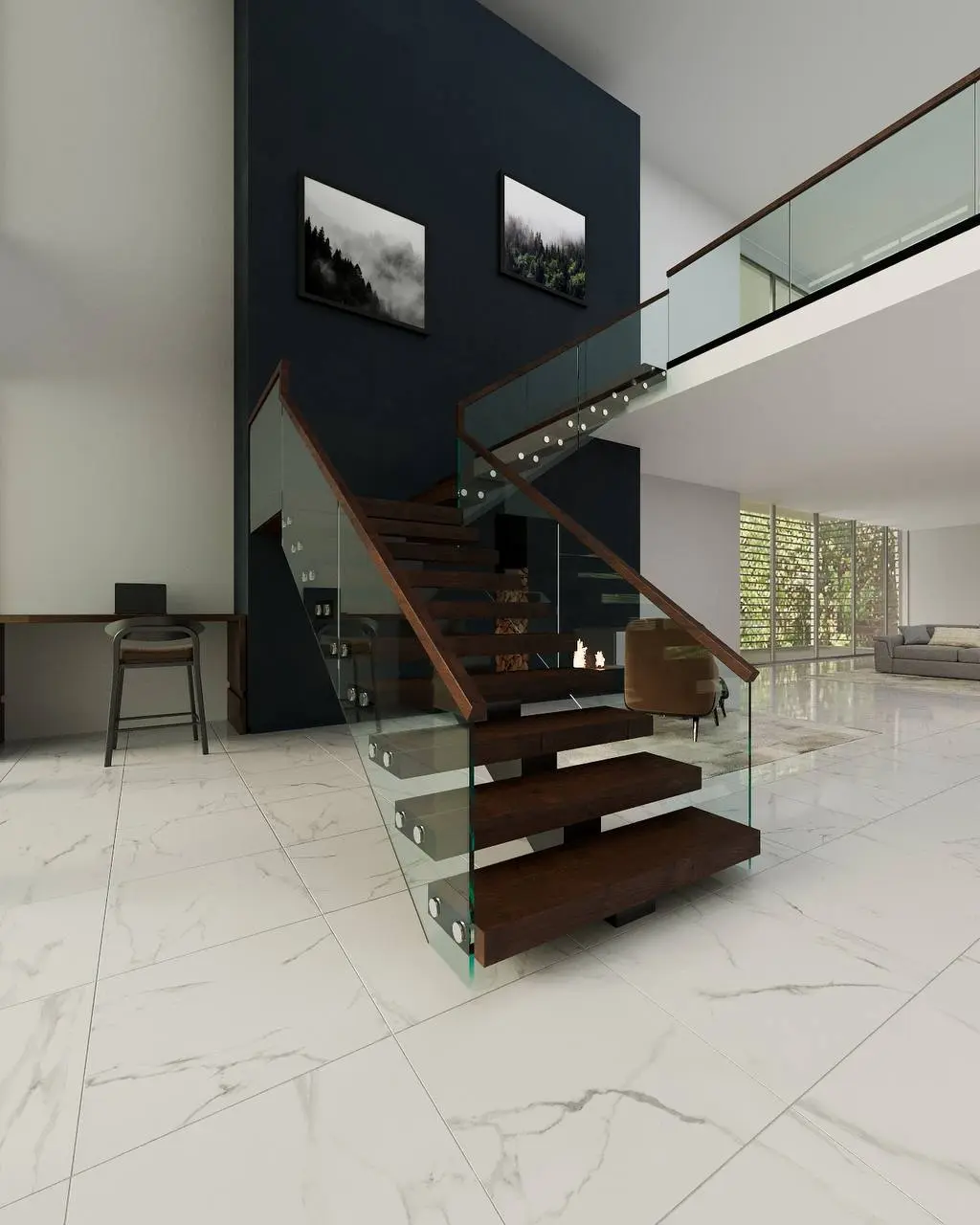 Glass panels appear to float with minimal visible support structure for a dramatic floating effect.